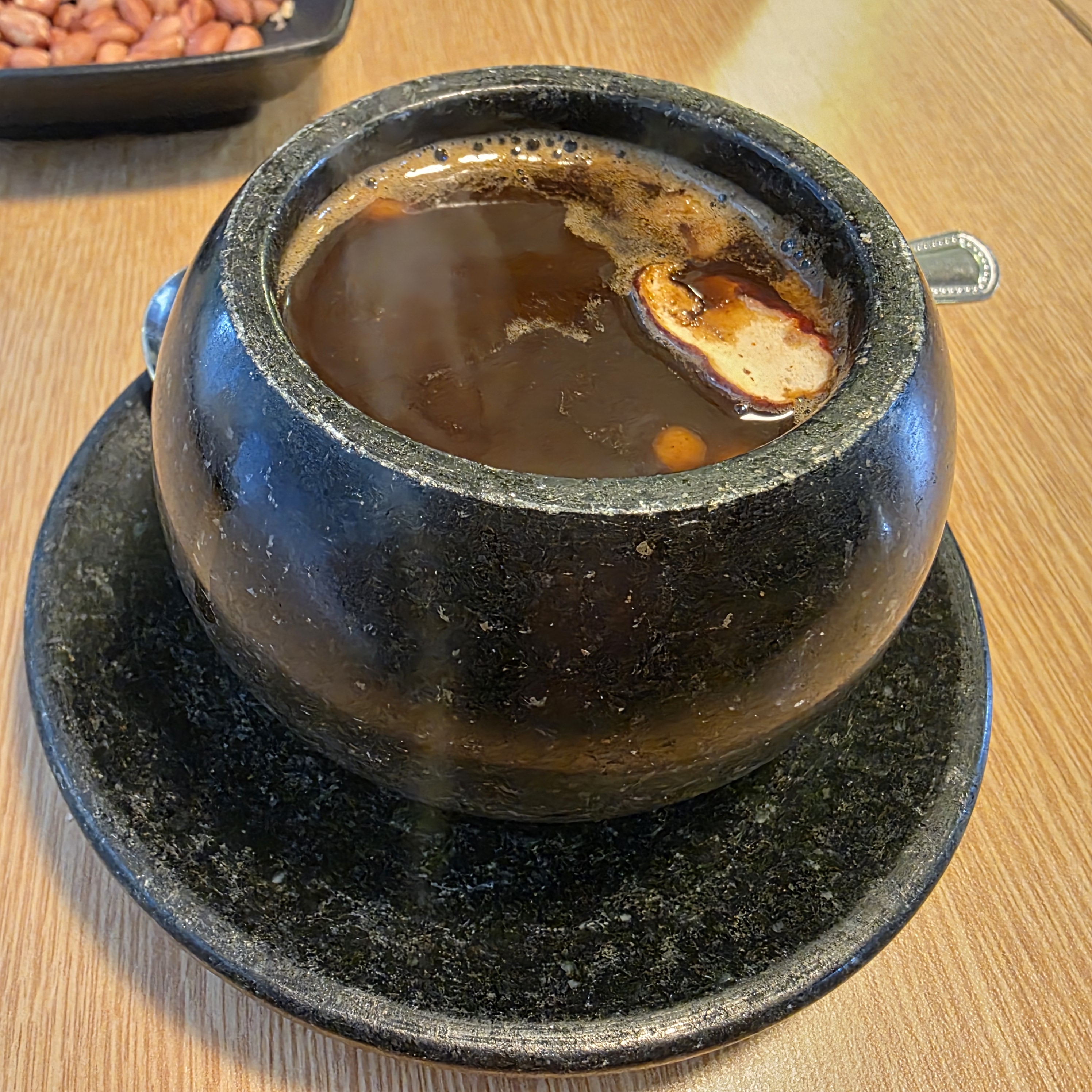 두 손으로 곱돌잔을 꼬옥 감싸 쥐며