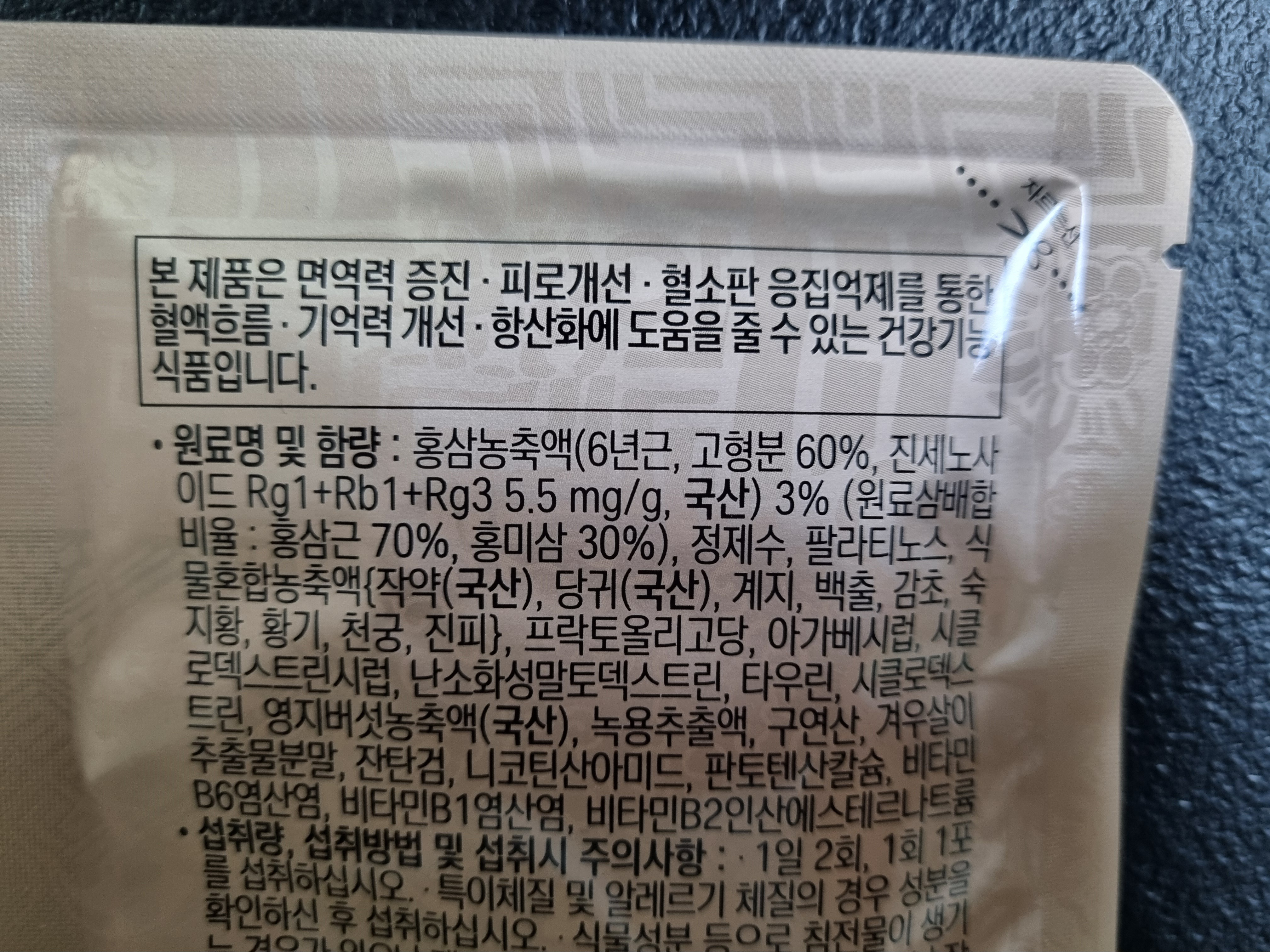 제품구입 시 성분표를 확인하여 총 진세노사이드 함량뿐 아니라, 각 성분들의 비율과 제품의 제조 공정까지 꼼꼼히 확인하여 자신에게 필요한 효능의 제품을 선택하는 것이 좋습니다.